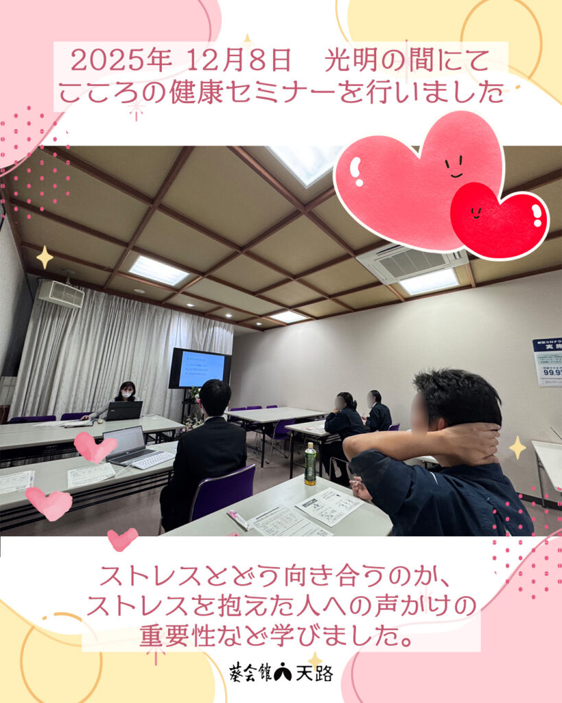 「こころの健康セミナー」を受講しました❤️🩹 11月28日、光明の間にて“こころの…