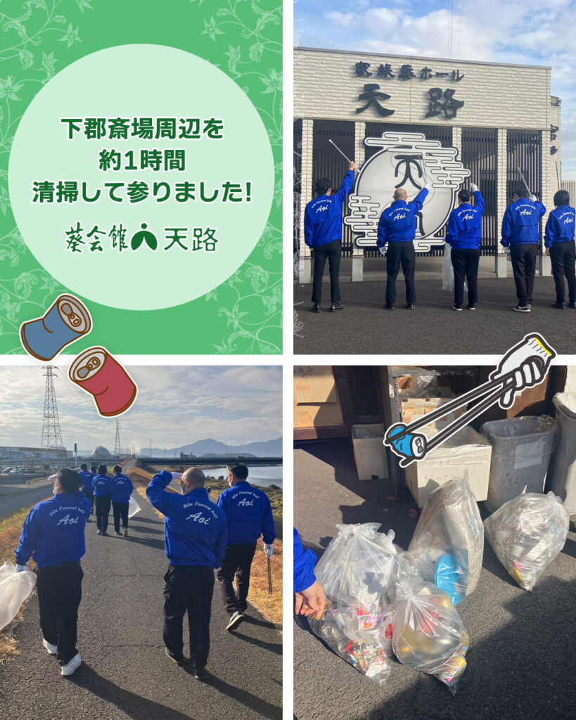 先日、下郡斎場周辺の清掃活動を行いました。約1時間、スタッフで協力しながらゴミの回収…