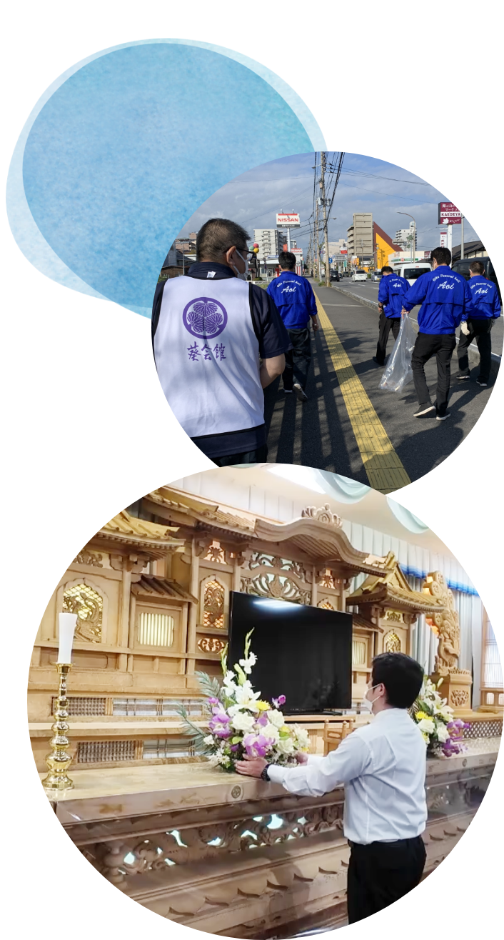 葬儀やお通夜が無い日は、地域のために活動したり、葵会館をもっと多くの方に知って頂くための活動を行います。