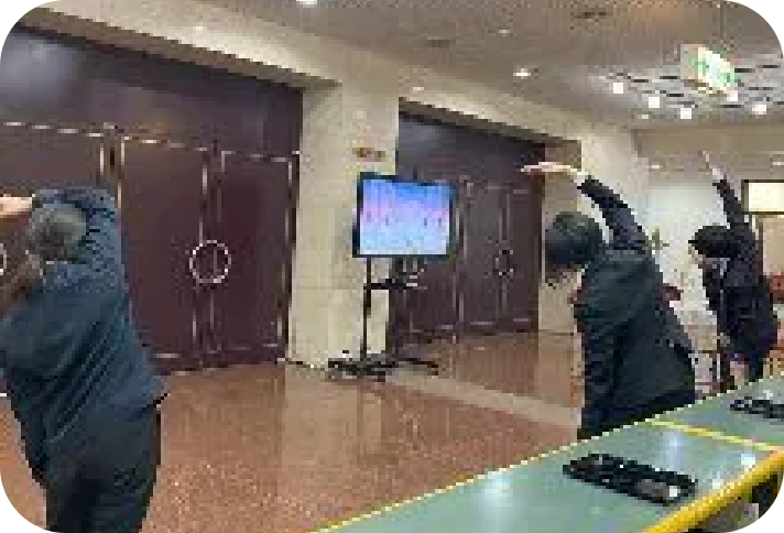 朝礼後にスタッフの健康を維持するためにラジオ体操を行なっています。